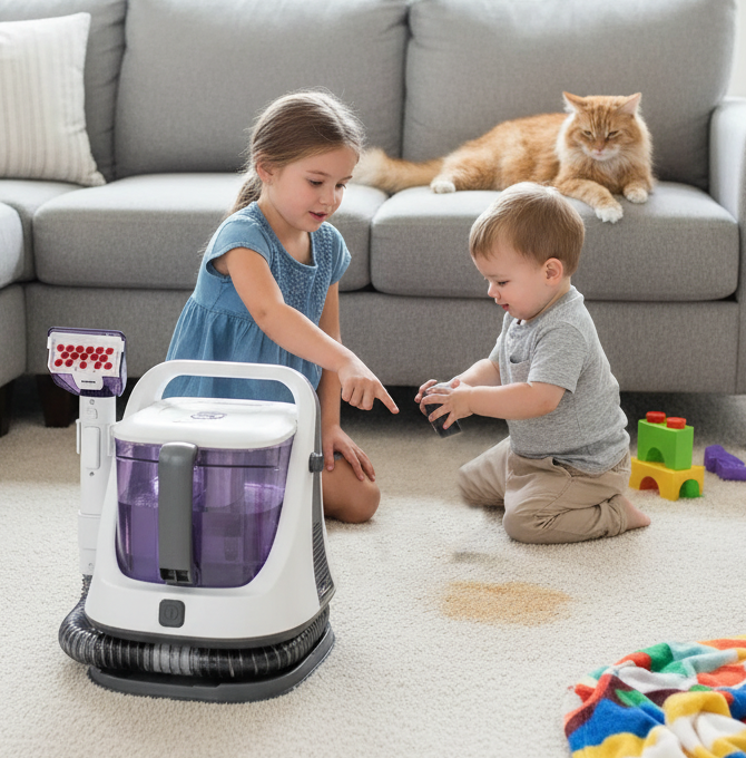 Benjamin, jeune papa, a complÚtement changé sa routine depuis qu'il a découvert cet appareil. Avant, il repoussait sans cesse le nettoyage de son tapis de salon souillé par les jeux de ses enfants. La perspective d'un nettoyage compliqué et bruyant le décourageait.